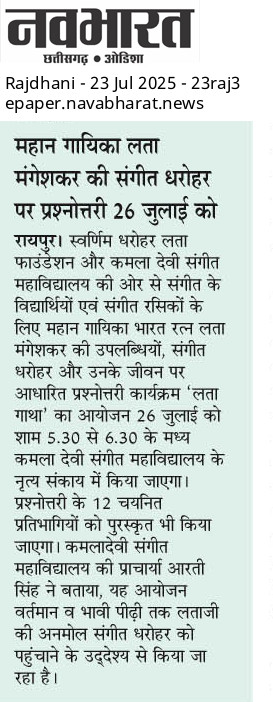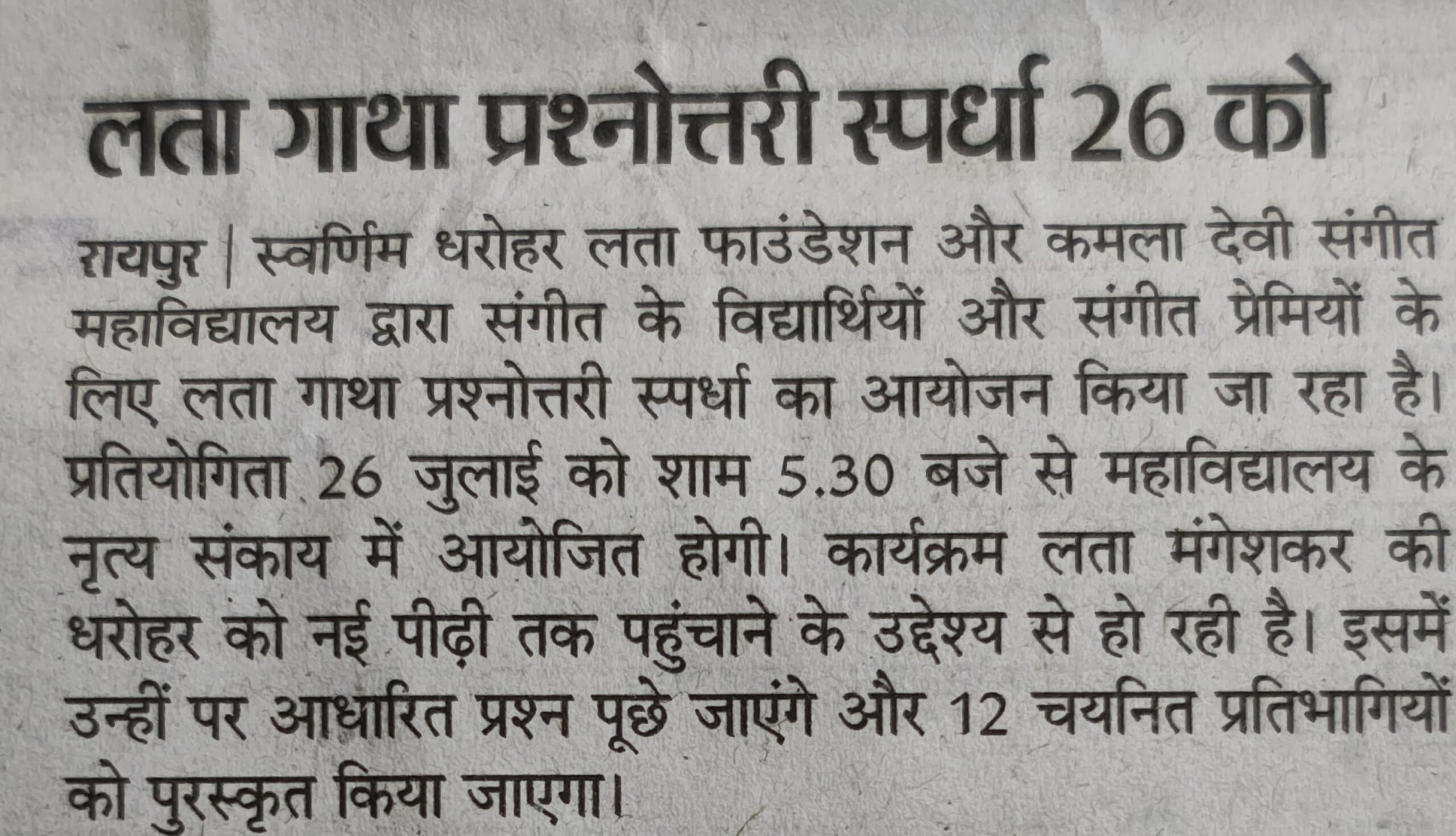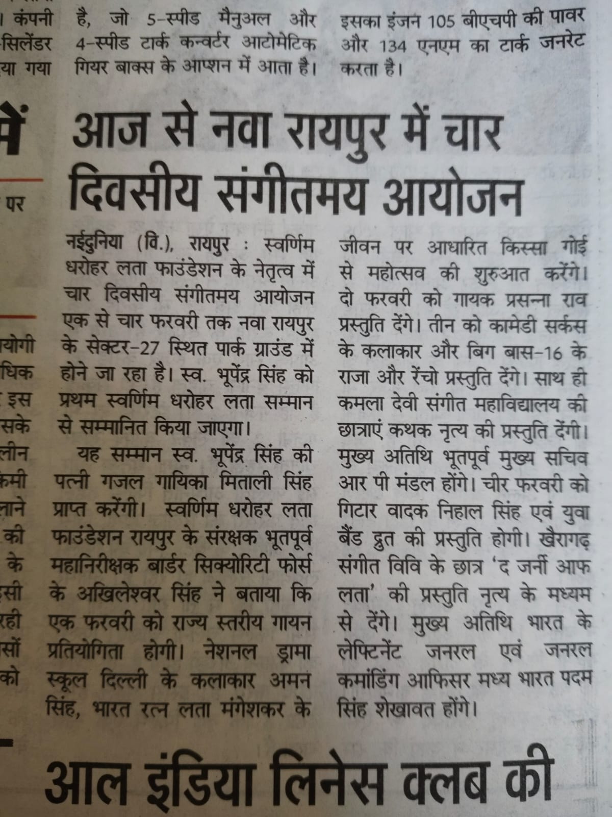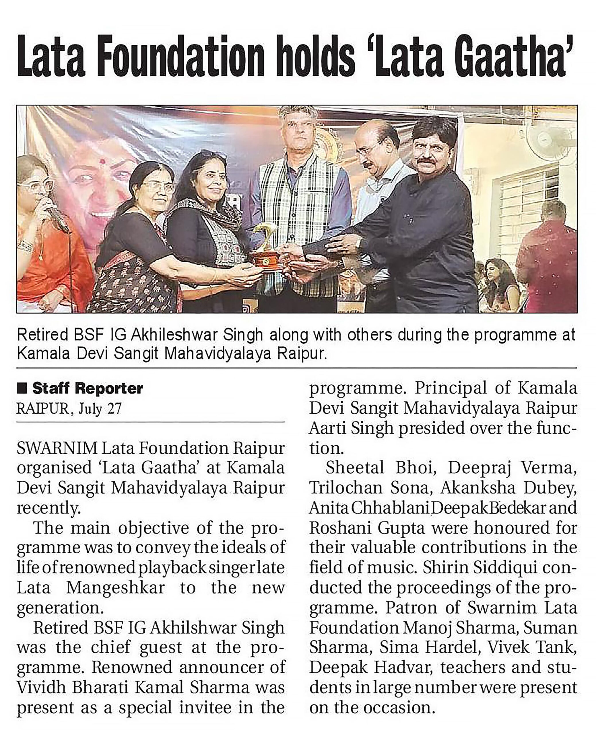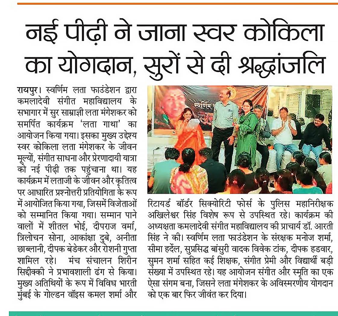 In honor of Bharat Ratna Lata Mangeshkar Ji, an eternal jewel of Indian music and the divine embodiment of Mata Saraswati, the ‘Swarnim Dharohar Lata Foundation’, based in Raipur (Chhattisgarh), has launched a Signiant cultural initiative. This endeavor aims to pay tribute to her unparalleled contribution to music and the nation, while preserving and transmitting her timeless musical legacy to future generations.
